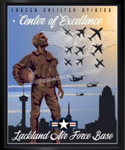 Embark on a journey through the skies with this captivating canvas art featuring Lackland AFB’s Career Enlisted Aviator Center of Excellence. Serving as a beacon of excellence, this center provides technical undergraduate flying training for over 3,000 students annually, including Active Duty, Reserve, Guard, International, and civilian personnel. With a focus on developing Career Enlisted Aviators across various specializations such as Special Mission Aviators, Mobility Force Aviators, Executive Mission Aviators, and Multi-Domain Operation Aviators, this artwork celebrates the dedication and expertise of those who take to the skies in service of their country. Illuminate your space with the spirit of aviation excellence and the proud tradition of the Career Enlisted Aviator community with this stunning canvas art.
