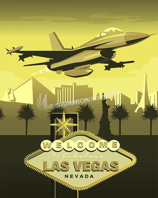 “Las Vegas F-16, Nellis AFB” vintage style military aviation art by – Squadron Posters!