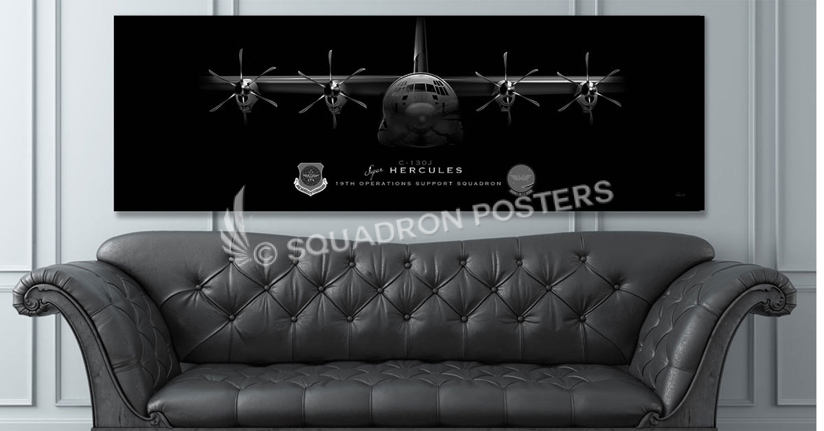 “Super Wide” Little Rock AFB 19th OSS C-130J Super Hercules Canvas Wrap with Floating Black Gallery Frame.