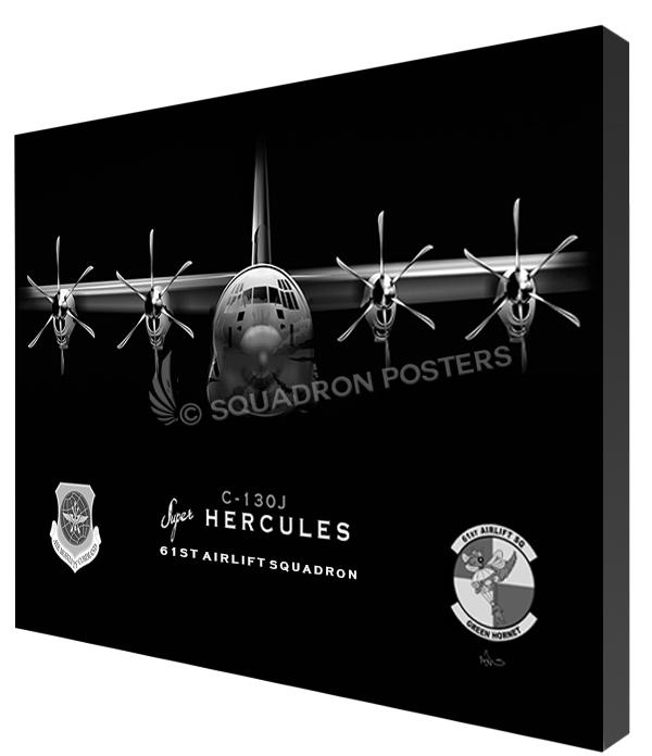 The 61st Airlift Squadron is a United States Air Force unit assigned to the Air Mobility Command ‘s 19th Airlift Wing at Little Rock Air Force Base , Arkansas . It operates C – 130J Hercules aircraft for airlift and airdrop operations. The C – 130J Super Hercules is a four – engine turboprop military transport aircraft . The C – 130J is a comprehensive update of the C – 130 Hercules , with new engines, flight deck , and other systems. The C – 130J is the newest version of the C – 130 Hercules, and the only model currently in production. As of March 2022, 500 C – 130J aircraft have been delivered to 26 operators in 22 countries.
