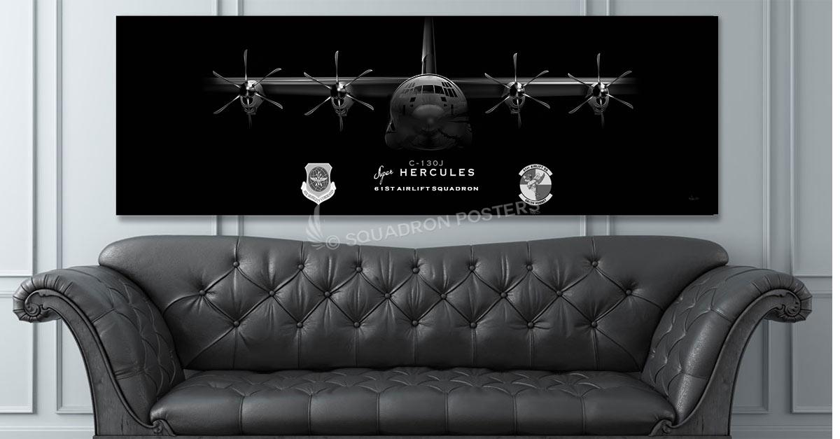 “Super Wide” Little Rock AFB 61st AS Jet Black Super Wide Canvas Print with Floating Black Gallery Frame.
