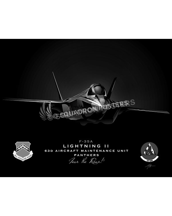 The 63d Aircraft Maintenance Unit (63d AMU) which is part of the 56th Fighter Wing stationed at Luke AFB in Glendale, AZ.  They maintain the F-35 Lightning II and provide safe reliable aircraft for the 63d Fighter SQ so they can train fighter pilot students. The 63d is one of the oldest fighter squadrons in the Air Force. (See more below)