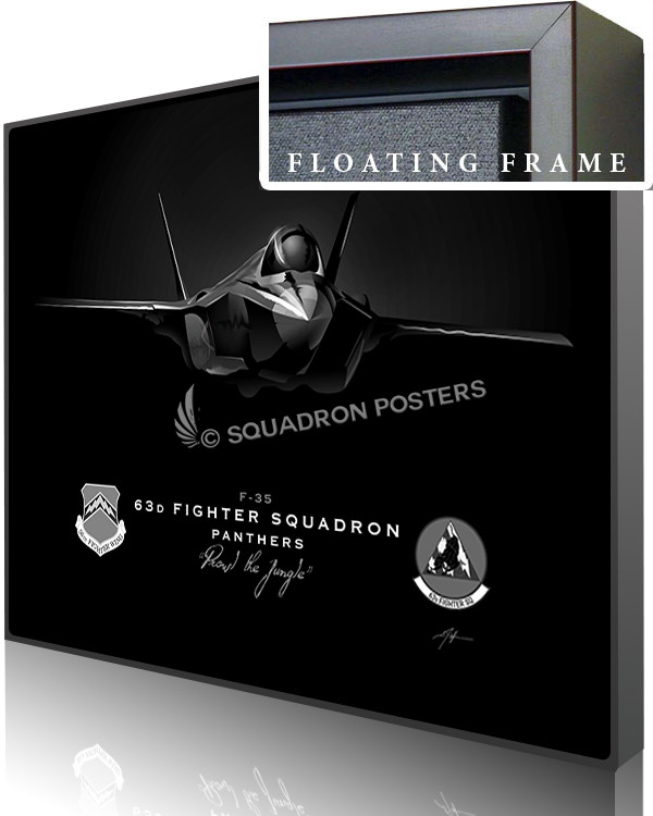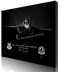 “F-35 63d FS Jet Black Lithograph” military aviation travel poster art by – Squadron Posters!