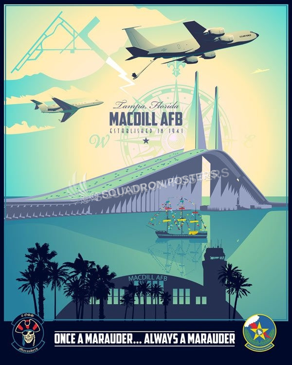 “MacDill AFB 6 OSS KC-135 and C-37” vintage style military art by – Squadron Posters!