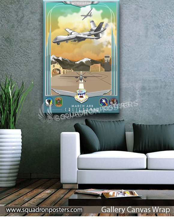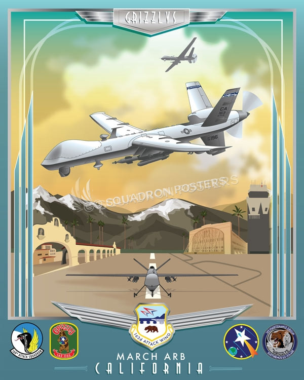 “March Air Reserve Base 163 ATKW MQ-9 Reaper” vintage style military aviation art by – Squadron Poster!