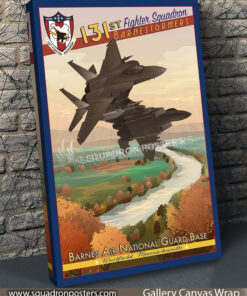 This stunning vintage style military aviation travel poster “Massachusetts ANG 131st FS F-15C” artwork is dedicated to all those who fly, maintain or support the F-15 Eagle with the 131st Fighter Squadron at Barnes Air National Guard Base.