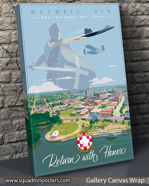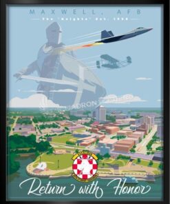 Maxwell Air Force Base, officially known as Maxwell-Gunter Air Force Base, is a United States Air Force installation under the Air Education and Training Command. The installation is located in Montgomery, Alabama. Occupying the site of the first Wright Flying School, it was named in honor of Second Lieutenant William C. Maxwell, a native of Atmore, Alabama. Check out this stunning Maxwell AFB Wright Flyer 30th Student Squadron art by – Squadron Posters!