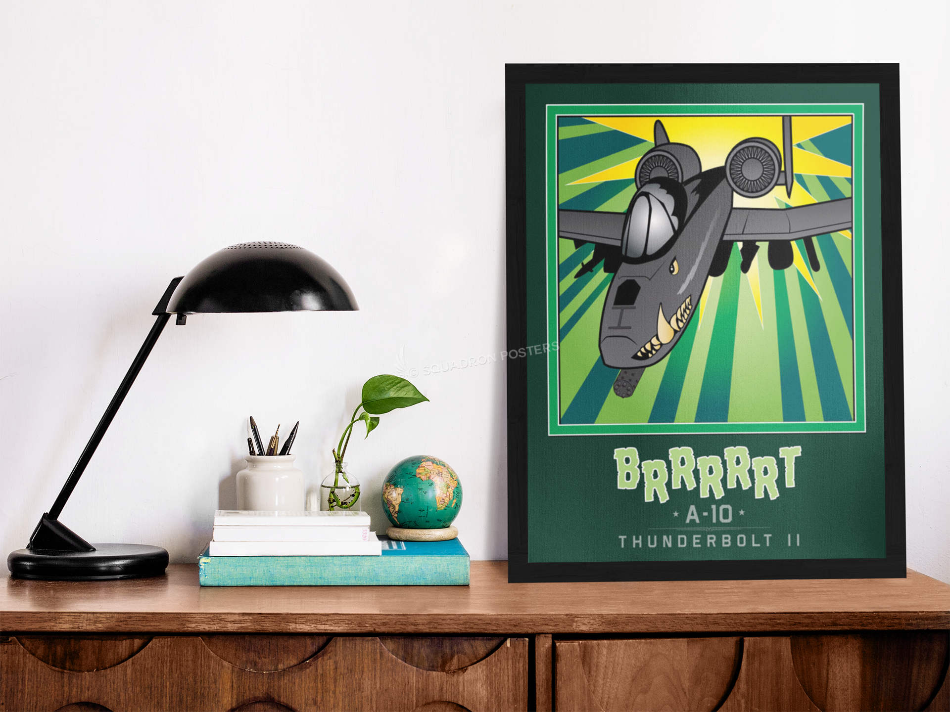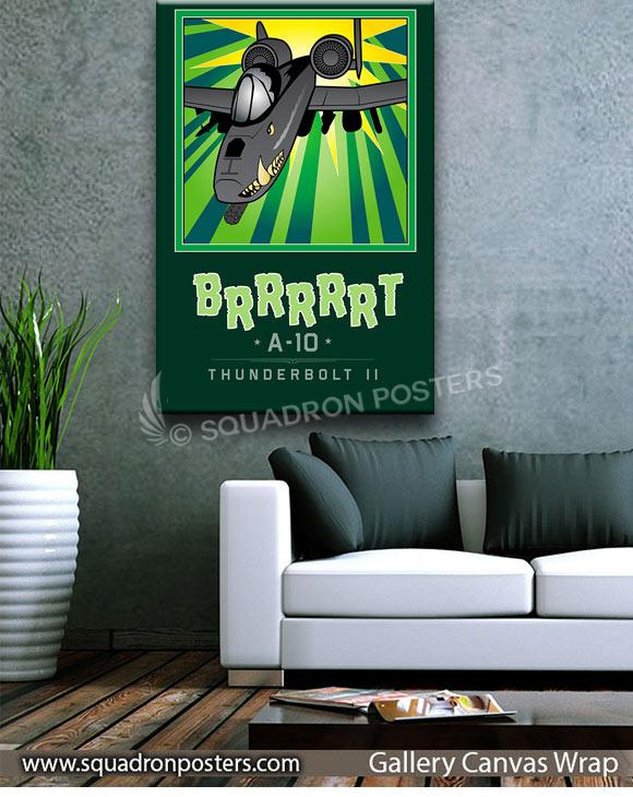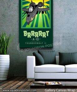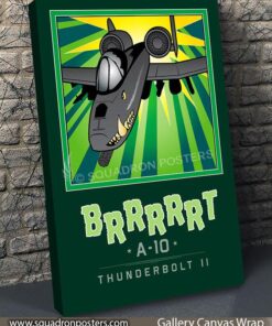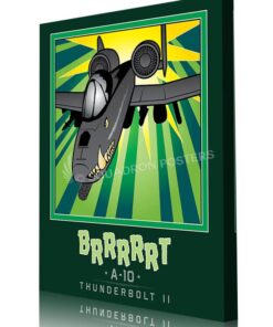 The A-10 was intended to improve on the performance and firepower of the Douglas A-1 Skyraider. The Thunderbolt II’s airframe was designed around the high-power 30 mm GAU-8 Avenger rotary autocannon (producing a distinct “BRRRRRT” sound when fired). The airframe was designed for durability, with measures such as 1,200 pounds (540 kg) of titanium armor to protect the cockpit and aircraft systems, enabling it to absorb damage and continue flying. Its ability to take off and land from relatively short and/or unpaved runways permits operation from airstrips close to the front lines, and its simple design enables maintenance with minimal facilities. Check out this stunning Mission Complete BRRRRRT Book Art by – Squadron Posters! Collect all your military travels and tell your story!