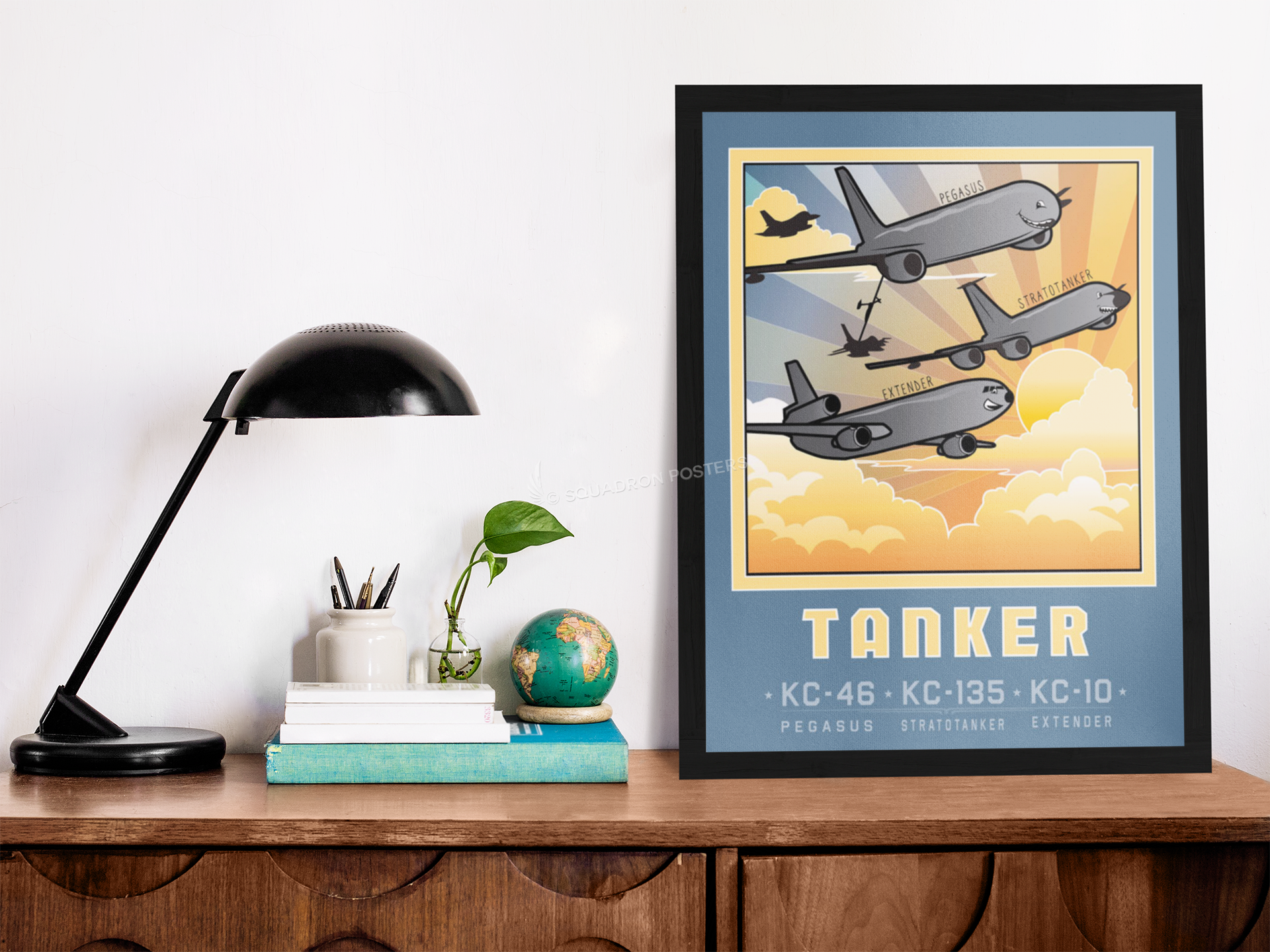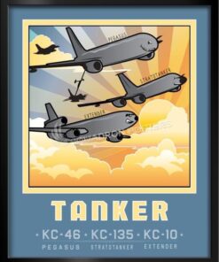 Refuel the imagination with this stunning artwork of the KC-Series tankers from “Mission Complete Air Force, Go to Sleep.” A tribute to the lifeline of the skies, this piece beautifully displays the vital role of aerial refueling missions with a bit of illustrated whimsy. The perfect poster for anyone the has a love for the KC-10, KC-46, and the KC-135.