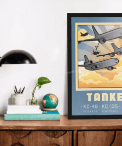 Refuel the imagination with this stunning artwork of the KC-Series tankers from “Mission Complete Air Force, Go to Sleep.” A tribute to the lifeline of the skies, this piece beautifully displays the vital role of aerial refueling missions with a bit of illustrated whimsy. The perfect poster for anyone the has a love for the KC-10, KC-46, and the KC-135.