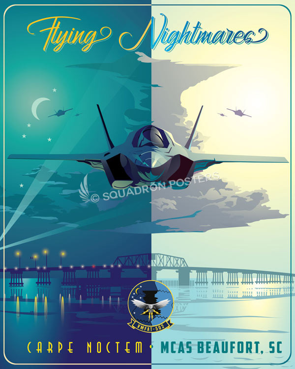 “MCAS Beaufort VMFAT-502” vintage style military aviation travel poster art by – Squadron Posters!