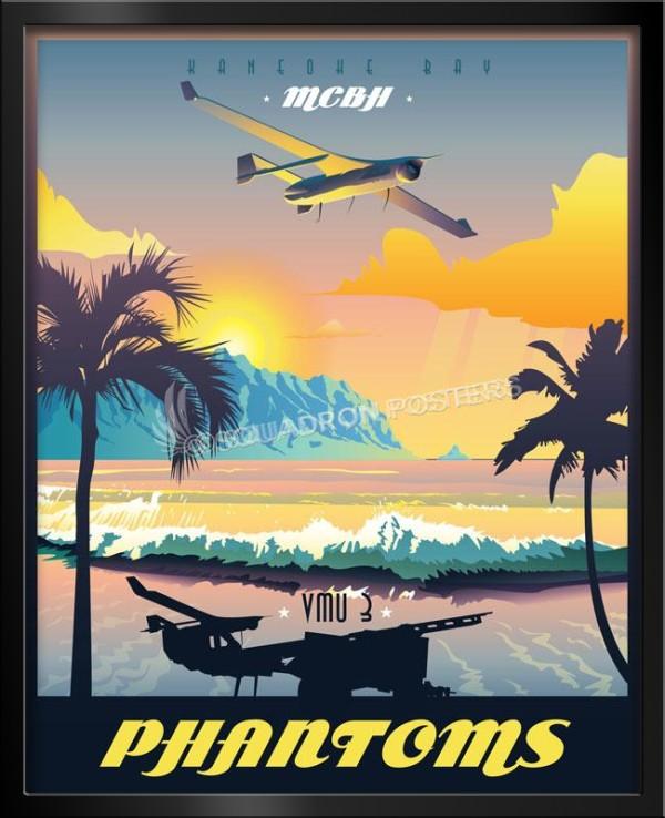 MCBH Kaneohe Bay Hawaii VMU-3 vintage style military aviation travel poster art by – Squadron Posters!