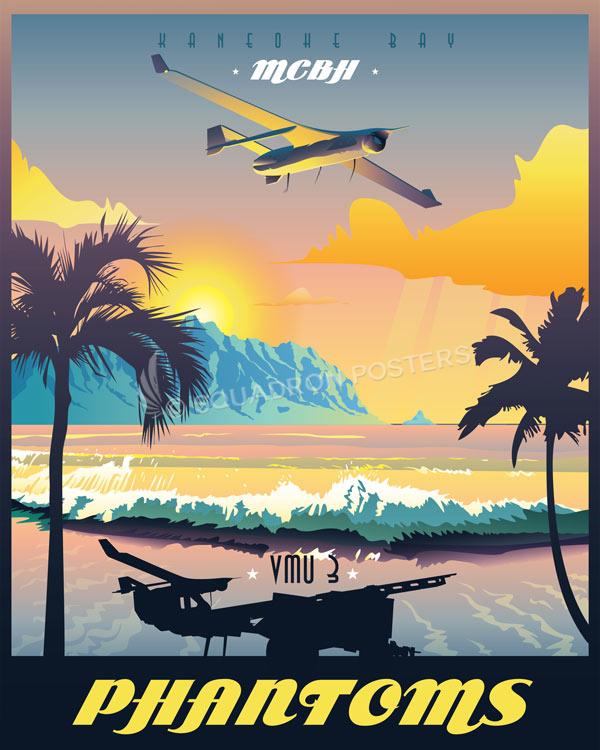 MCBH Kaneohe Bay Hawaii VMU-3 vintage style military aviation travel poster art by – Squadron Posters!
