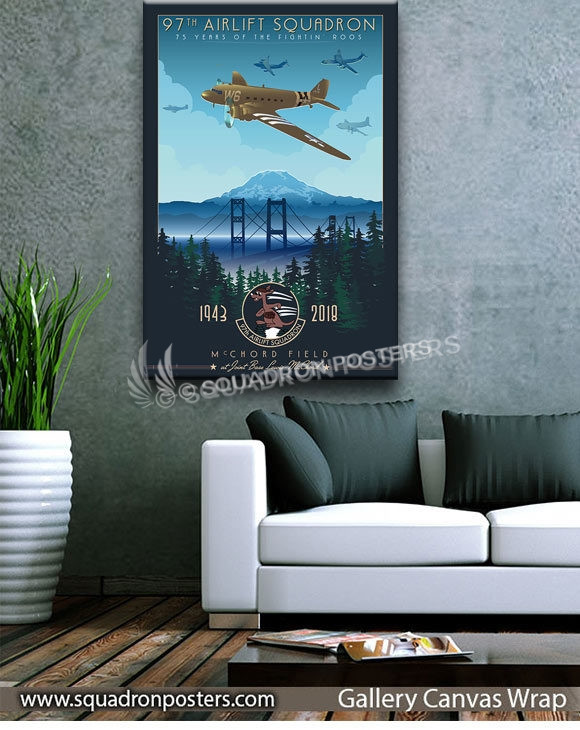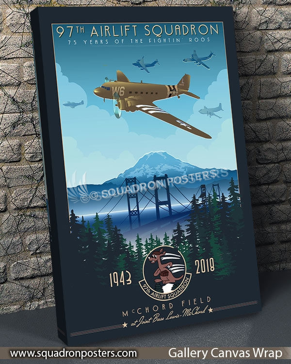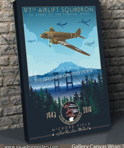 “McChord Field, 97th Airlift Squadron 75 Years Heritage Art“ vintage style military aviation heritage artwork by – Squadron Posters!