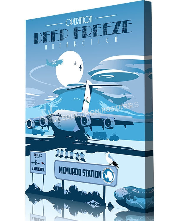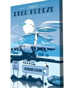 “McMurdo Station Antarctica Phoenix Airfield C-17” vintage style military aviation travel poster art by – Squadron Posters!