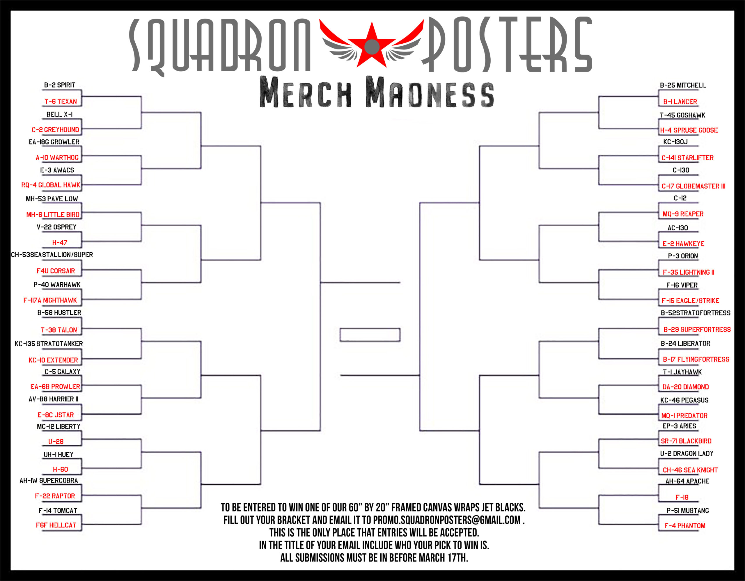 The winning aircraft will be decided via our Instagram polls (@SquadronPosters on Instagram). Each round will only last 24 hours. One winner will be selected, and ties will be settled by total number of wins.