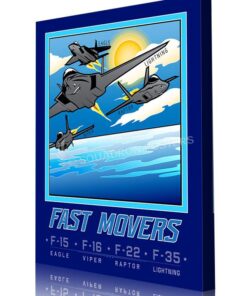 Many modern fighter aircraft also have secondary capabilities such as ground attack and some types, such as fighter-bombers, are designed from the outset for dual roles. Other fighter designs are highly specialized while still filling the main air superiority role, and these include the interceptor and, historically, the heavy fighter and night fighter. Check out this stunning Mission Complete FAST MOVERS Book Art by – Squadron Posters! Collect all your military travels and tell your story!