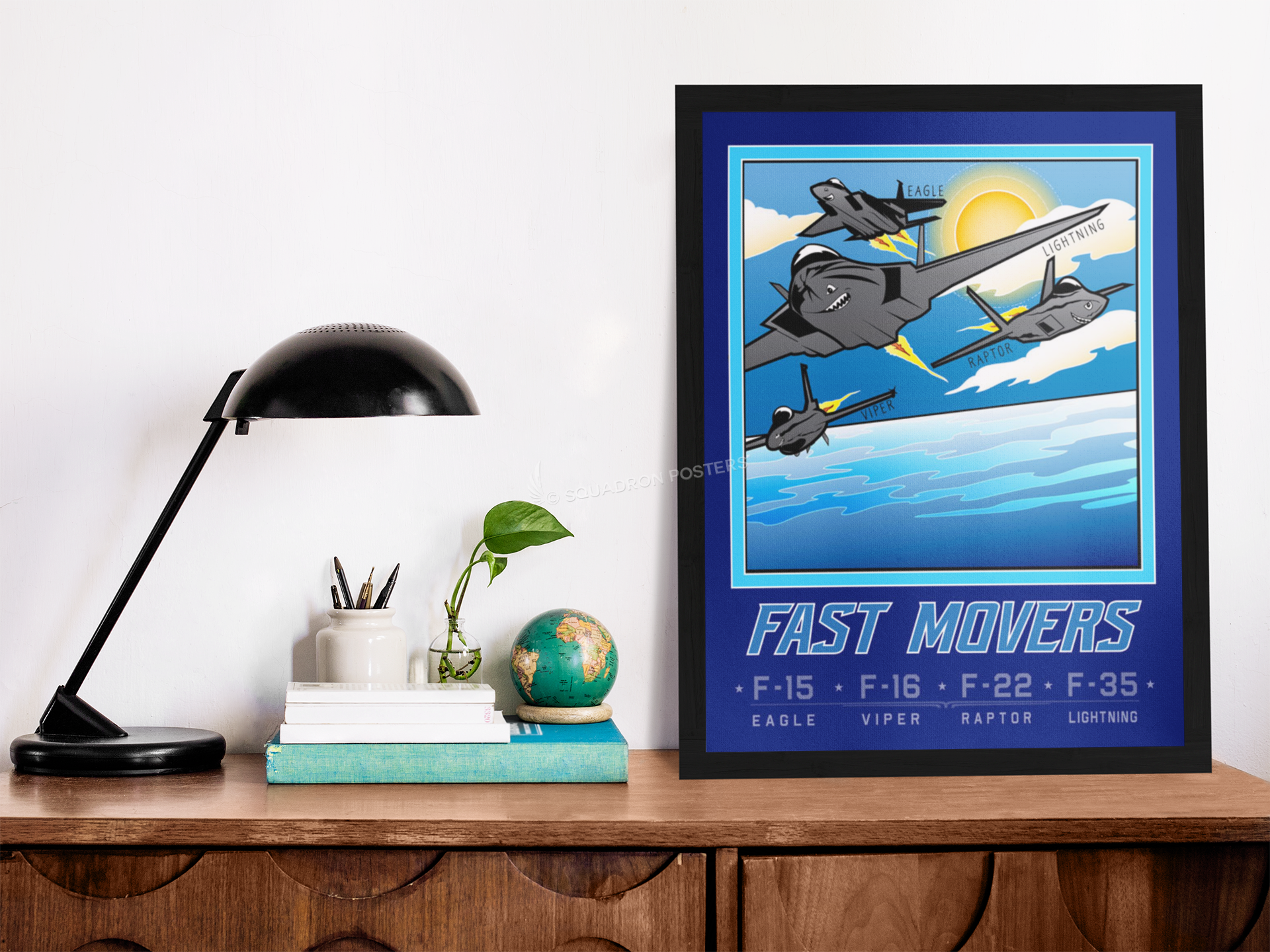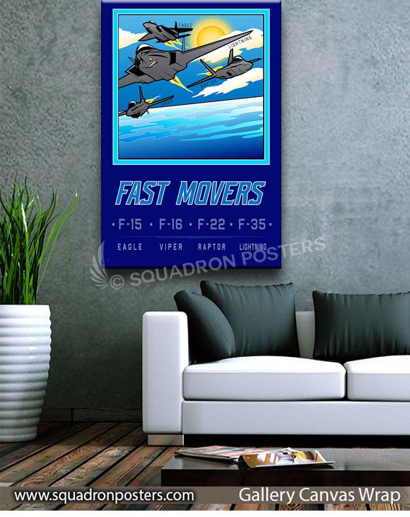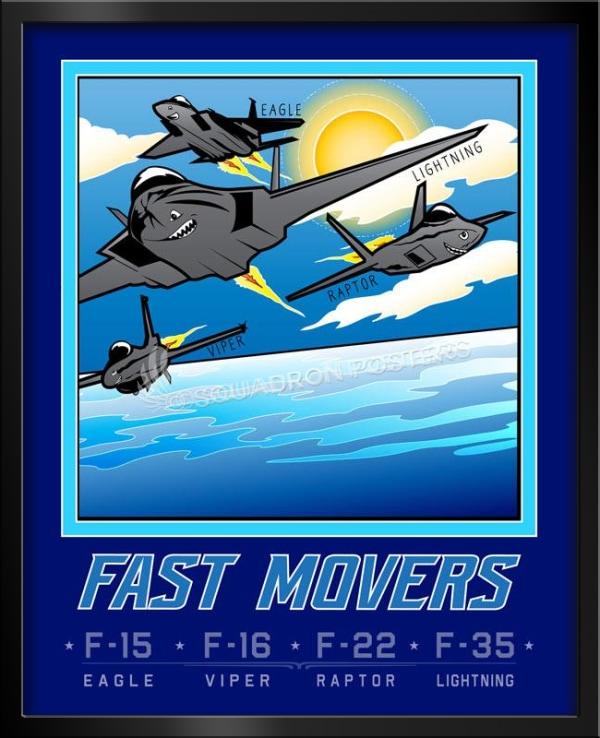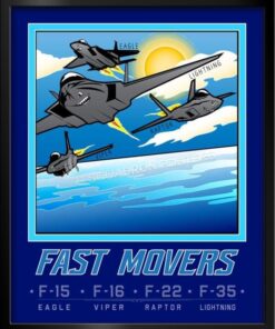 Many modern fighter aircraft also have secondary capabilities such as ground attack and some types, such as fighter-bombers, are designed from the outset for dual roles. Other fighter designs are highly specialized while still filling the main air superiority role, and these include the interceptor and, historically, the heavy fighter and night fighter. Check out this stunning Mission Complete FAST MOVERS Book Art by – Squadron Posters! Collect all your military travels and tell your story!