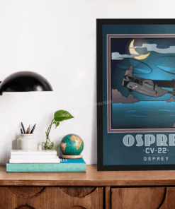 The failure of Operation Eagle Claw in 1980 during the Iran hostage crisis underscored that there were military roles for which neither conventional helicopters nor fixed-wing transport aircraft were well-suited. The United States Department of Defense (DoD) initiated a program to develop an innovative transport aircraft with long-range, high-speed, and vertical-takeoff capabilities, and the Joint-service Vertical take-off/landing Experimental (JVX) program officially began in 1981. A partnership between Bell Helicopter and Boeing Helicopters was awarded a development contract in 1983 for the V-22 tiltrotor aircraft. The Bell-Boeing team jointly produces the aircraft. The V-22 first flew in 1989 and began flight testing and design alterations; the complexity and difficulties of being the first tiltrotors for military service led to many years of development. Check out this stunning Mission Complete OSPREY Book Art by – Squadron Posters! Collect all your military travels and tell your story!