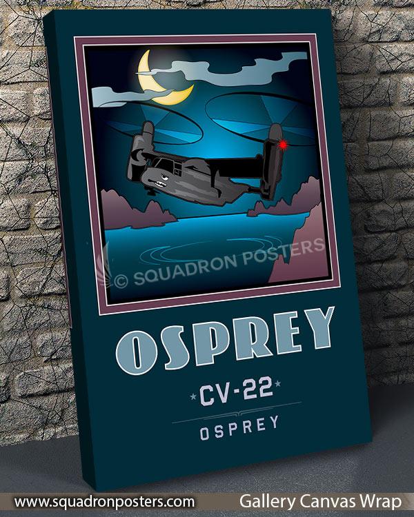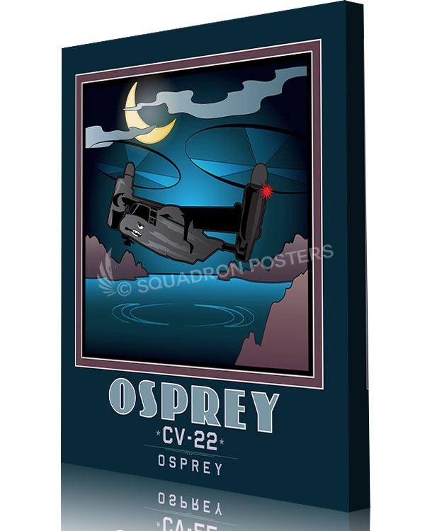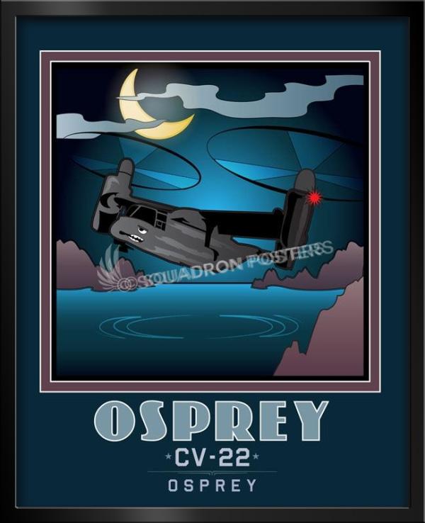 The failure of Operation Eagle Claw in 1980 during the Iran hostage crisis underscored that there were military roles for which neither conventional helicopters nor fixed-wing transport aircraft were well-suited. The United States Department of Defense (DoD) initiated a program to develop an innovative transport aircraft with long-range, high-speed, and vertical-takeoff capabilities, and the Joint-service Vertical take-off/landing Experimental (JVX) program officially began in 1981. A partnership between Bell Helicopter and Boeing Helicopters was awarded a development contract in 1983 for the V-22 tiltrotor aircraft. The Bell-Boeing team jointly produces the aircraft. The V-22 first flew in 1989 and began flight testing and design alterations; the complexity and difficulties of being the first tiltrotors for military service led to many years of development. Check out this stunning Mission Complete OSPREY Book Art by – Squadron Posters! Collect all your military travels and tell your story!