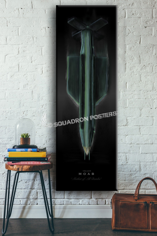 Mother of All Bombs, the GBU-43/B MOAB! This is a floating framed canvas print of exclusive digital artwork we created just for the successful MOAB drop  in Afghanistan on Thursday, 13 April 2017. The pictures online don’t do it justice, it looks awesome!