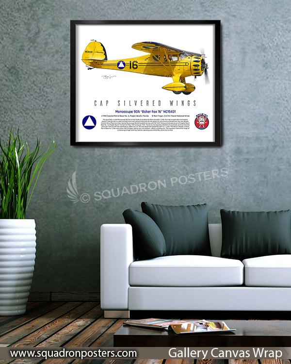 Monocoupe 90A Baker Fox 16 NC15431 vintage style military aviation travel poster art by – Squadron Posters!