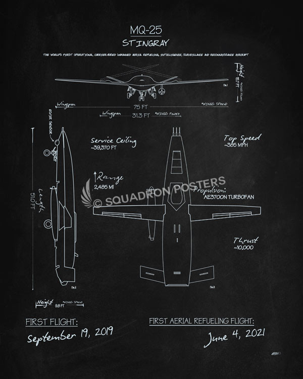 MQ-25 Stingray Blackboard vintage style military aviation travel poster art by – Squadron Posters!
