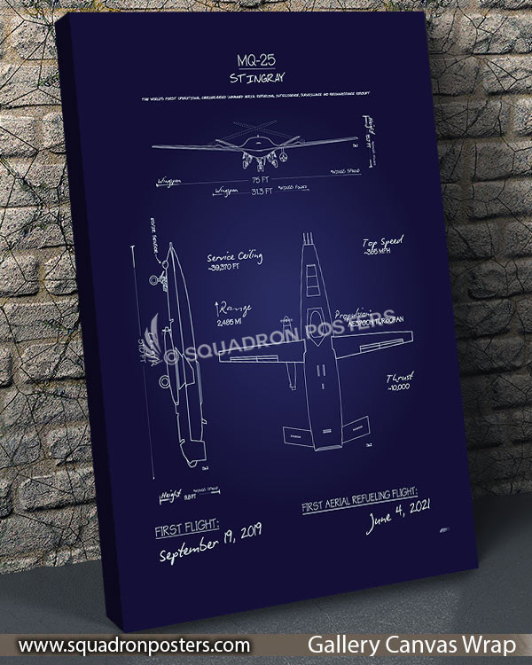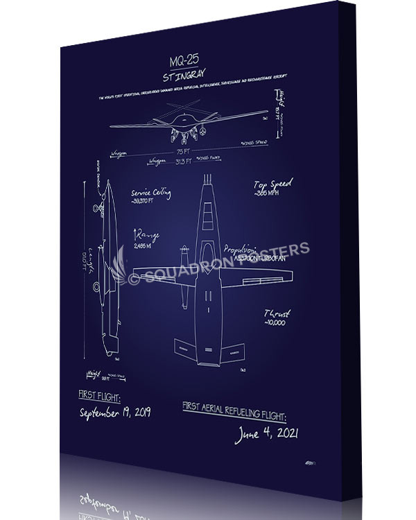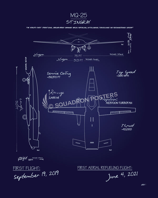 MQ-25 Stingray Blueprint vintage style military aviation travel poster art by – Squadron Posters!