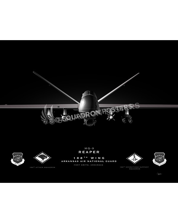 “MQ-9 188th Wing Jet Black Lithograph” military aviation poster art by – Squadron Posters!