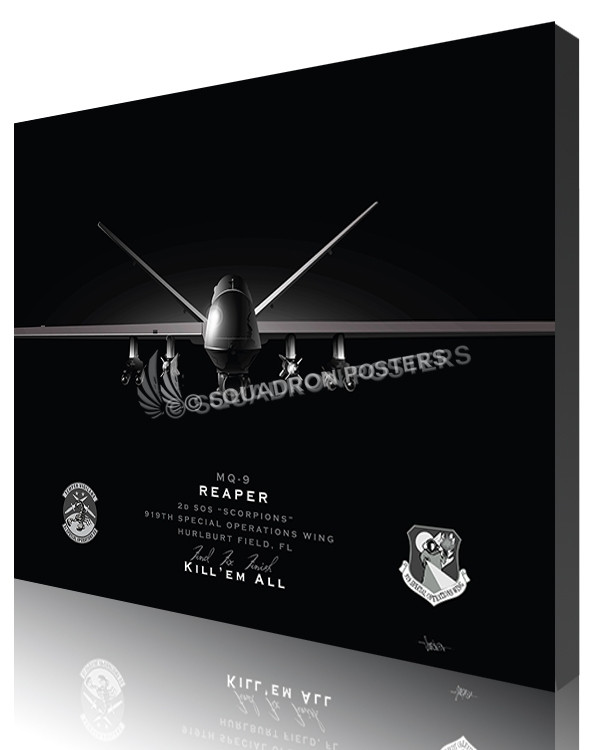 “MQ-9 2 SOS Jet Black Lithograph” military aviation poster art by – Squadron Posters!