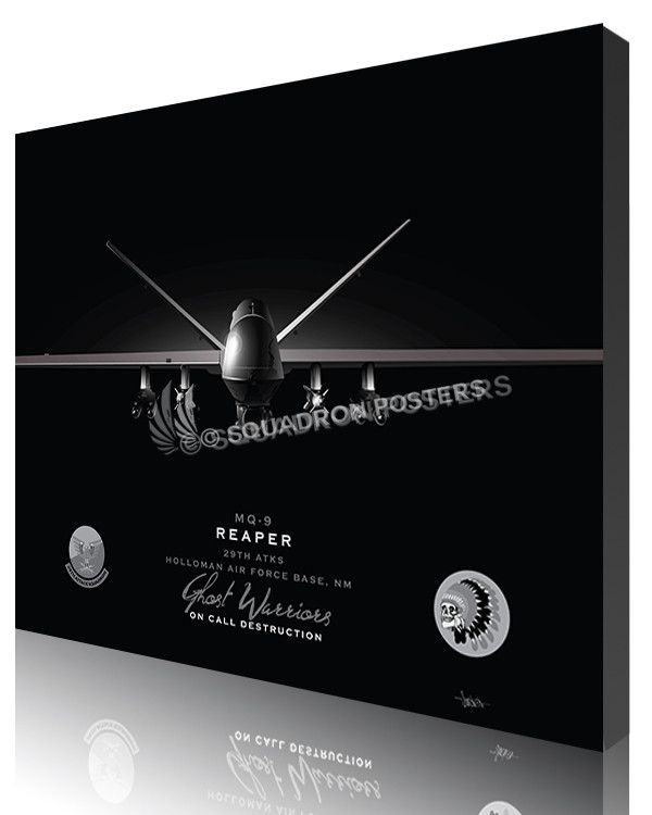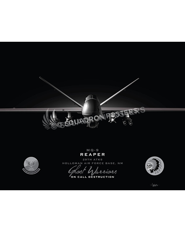 “MQ-9 29th ATKS Jet Black Lithograph” military aviation poster art by – Squadron Posters!