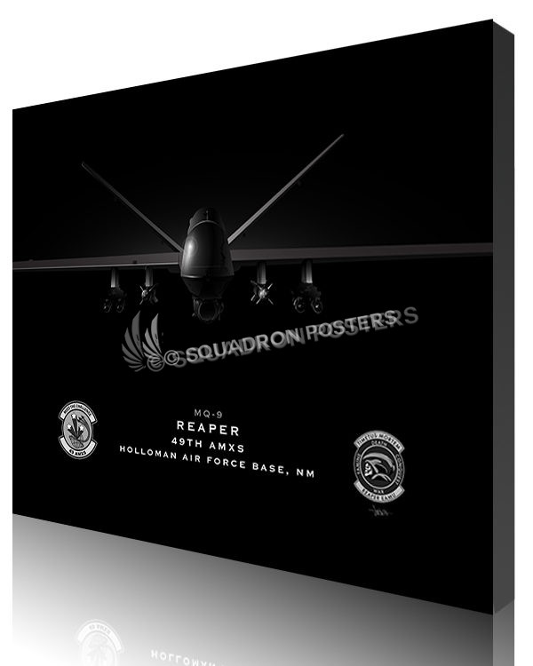 “MQ-9 49th AMXS Jet Black Lithograph” military aviation poster art by – Squadron Posters!