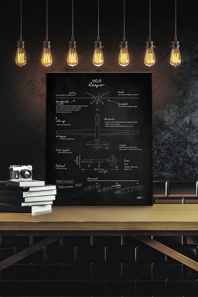 MQ-9 Reaper Blackboard Canvas military aviation blueprint art by – Squadron Posters!