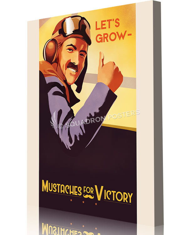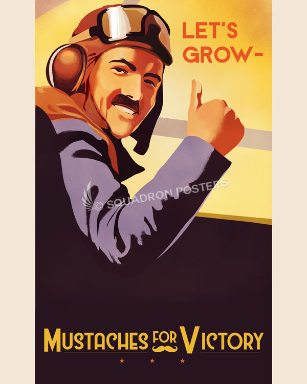 Let’s Grow – Mustaches for Victory! Squadron Posters artwork based on the original 1943 WWII British poster: “Let’s Go – Wings for Victory” artwork. (Generic version)