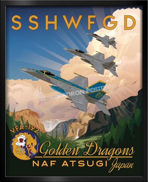 NAF Atsugi VFA 192 vintage style military aviation travel poster art by – Squadron Posters!