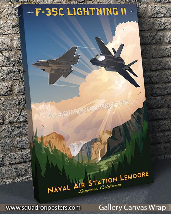 “NAS Lemoore F-35C Lightning II” vintage style military aviation travel poster art by – Squadron Posters!