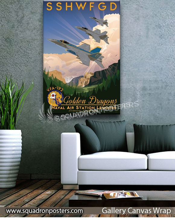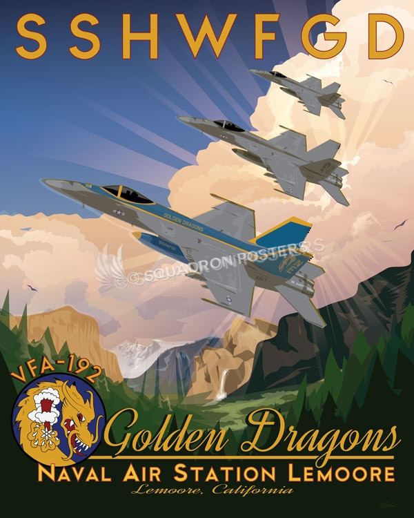 Strike Fighter Squadron 192 (VFA-192), also known as the “World Famous Golden Dragons”, are a United States Navy F/A-18E Super Hornet fighter squadron stationed at NAS Lemoore. The motto is “SSHWFGD” which translates: Super Sh*t Hot World Famous Golden Dragons!Naval Air Station Lemoore or NAS Lemoore is a United States Navy base, located in Kings County and Fresno County, California. NAS Lemoore is the Navy’s newest and largest Master Jet Base. Strike Fighter Wing Pacific, along with its associated squadrons, is home ported there. NAS Lemoore also hosts four Carrier Air Wings: Carrier Air Wing Two (CVW-2), Carrier Air Wing Nine (CVW-9), Carrier Air Wing Eleven (CVW-11), and Carrier Air Wing Seventeen (CVW-17).