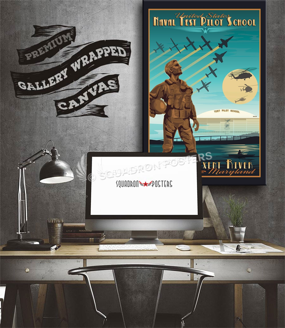 “NAS Patuxent River – Naval Test Pilot School” vintage style military aviation artwork by – Squadron Posters!