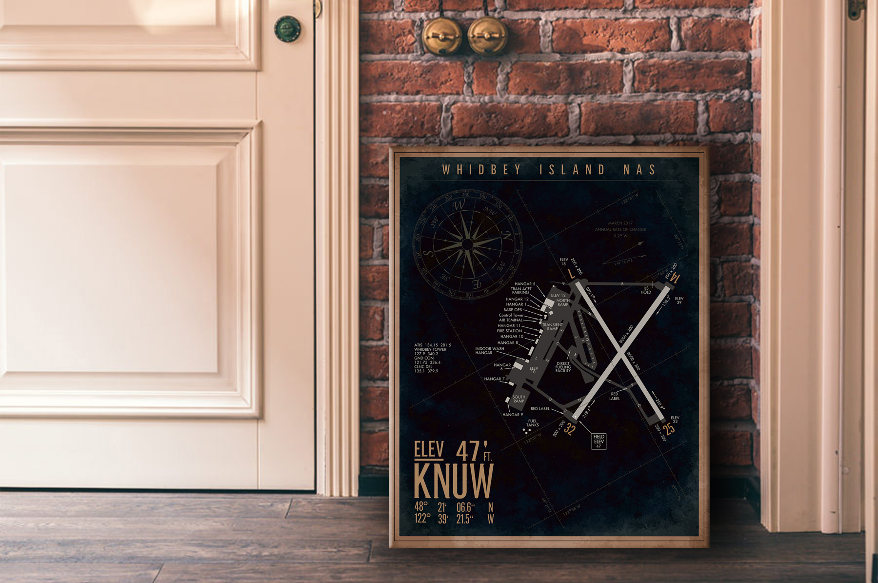 “NAS Whidbey Island KNUW Map Art” vintage style military aviation art by – Squadron Posters!