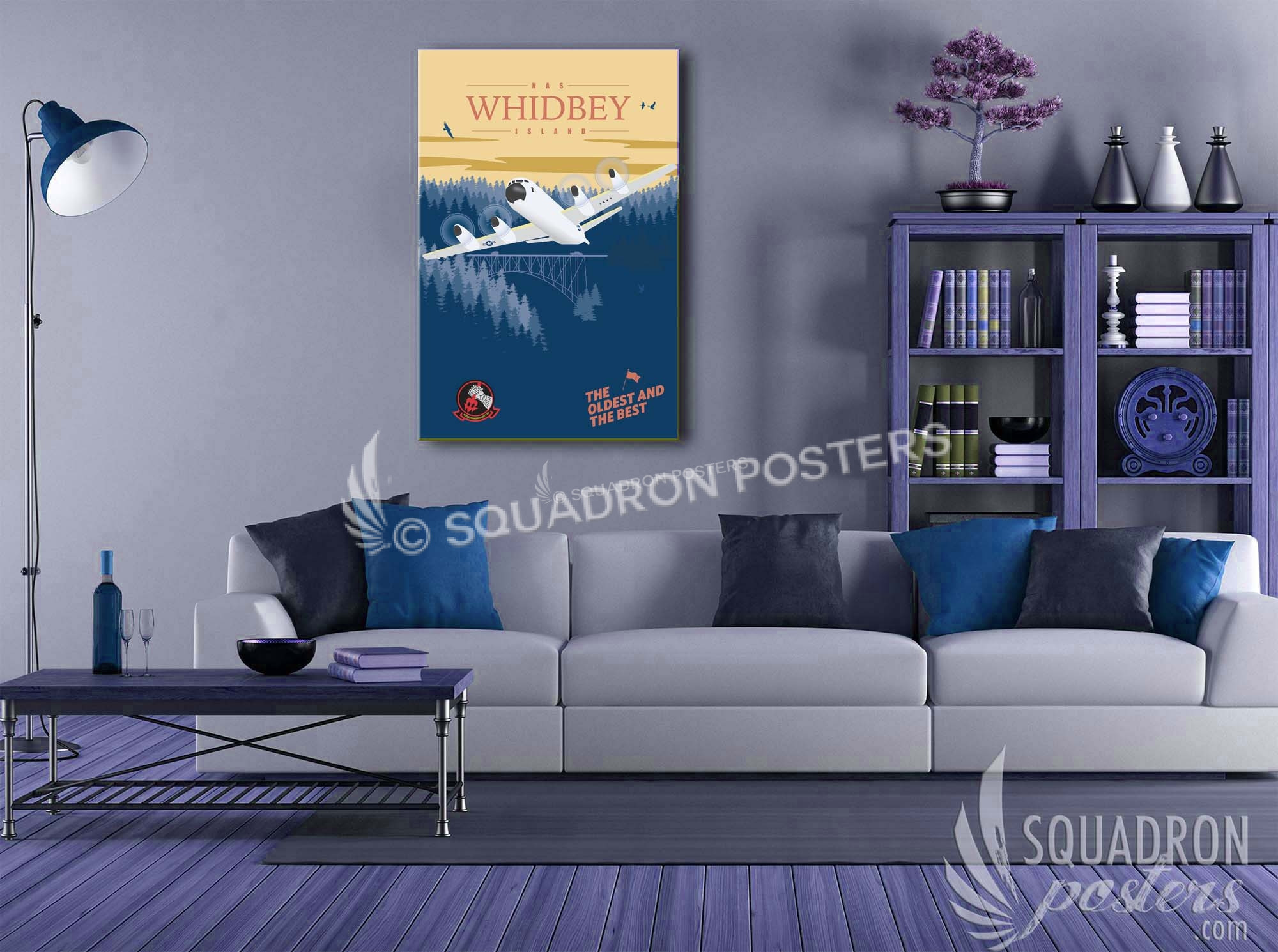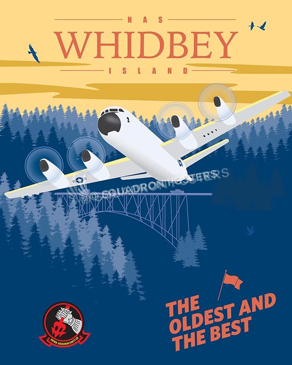 NAS Whidbey Island P-3 “The oldest and the Best” vintage poster art featuring Patrol Squadron 46 (VP-46), also known as the “Grey Knights”, is a maritime patrol squadron of the U.S. Navy based at Naval Air Station Whidbey Island, Washington. Part of Patrol and Reconnaissance Wing Ten, VP-46 is the oldest maritime patrol squadron and the second oldest aircraft squadron in the entire U.S. Navy, second only behind VFA-14. Naval Air Station Whidbey Island is a naval air station located in two sections near Oak Harbor, on Whidbey Island, in Island County, Washington. It was commissioned as an active U.S. Navy installation on 21 September 1942. The Lockheed P-3 Orion is a four-engine turboprop anti-submarine and maritime surveillance aircraft developed for the U.S. Navy and introduced in the 1960s. Lockheed based it on the L-188 Electra commercial airliner. The aircraft is easily recognizable from the Electra by its distinctive tail stinger or “MAD Boom”, used for the magnetic detection of submarines.