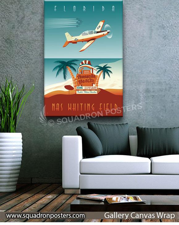 Celebrate the rich heritage of naval aviation training with this striking canvas art featuring the iconic T-6 Texan II aircraft. As the primary training platform for future naval aviators, the T-6 holds a special place in the history of NAS Whiting Field. From its pristine airfields to the clear blue skies above Florida, this artwork captures the essence of flight training excellence. Display this piece proudly as a tribute to the dedication and skill of the pilots who have honed their craft at NAS Whiting Field.