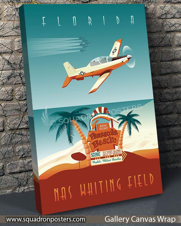 Celebrate the rich heritage of naval aviation training with this striking canvas art featuring the iconic T-6 Texan II aircraft. As the primary training platform for future naval aviators, the T-6 holds a special place in the history of NAS Whiting Field. From its pristine airfields to the clear blue skies above Florida, this artwork captures the essence of flight training excellence. Display this piece proudly as a tribute to the dedication and skill of the pilots who have honed their craft at NAS Whiting Field.