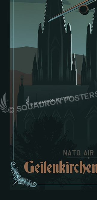 NATO Air Base Geilenkirchen (E-3A Component) is located near Geilenkirchen, Germany. It is the Main Operating Base of the NATO E-3A Component, one of two operational elements of the NATO Airborne Early Warning & Control Force. This poster features the famous Cathedral in Cologne, Germany.