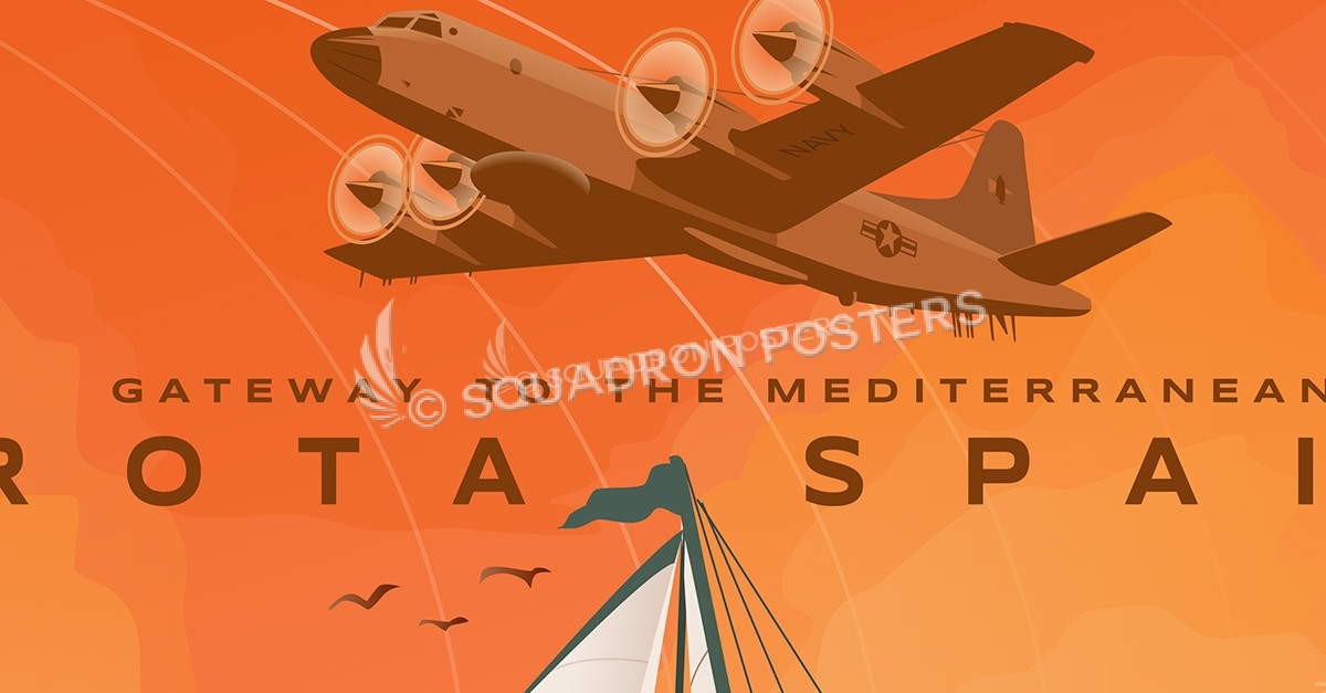 “Naval Station Rota Spain – EP-3 Aries” vintage style military art by – Squadron Posters!