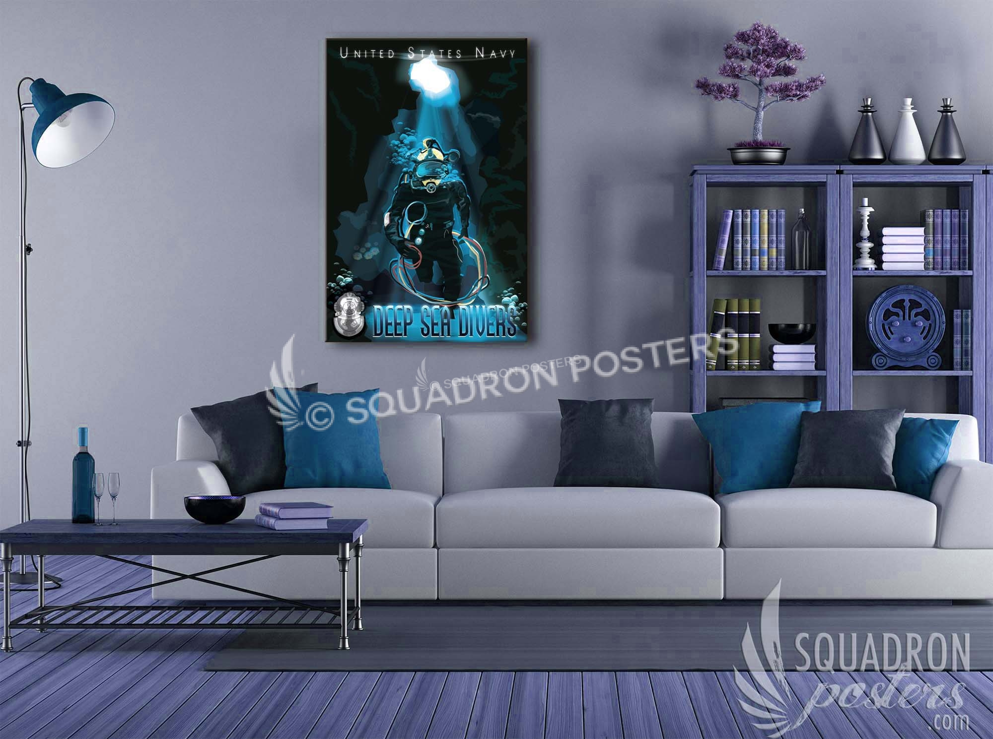This vintage art deco style military travel poster “Navy Deep Sea Divers” is dedicated to all those who served as U.S. Navy Deep Sea Divers.