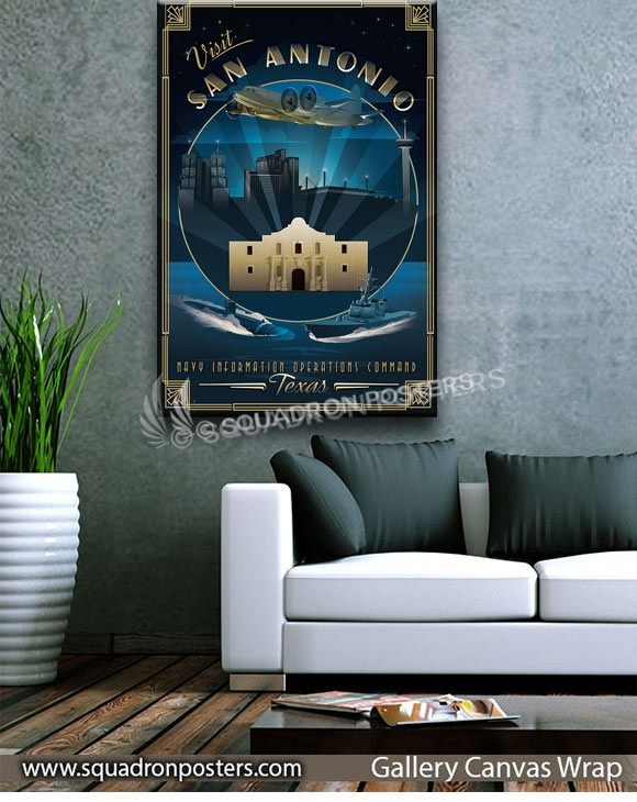 This vintage style military travel poster “Navy Information Operations Command Texas” (Version 2) is dedicated to all the hard working men and women who serve or have served with NIOC Texas. Navy Information Operations Command Texas (NIOC Texas) executes SIGINT and Computer Network Operations at sea, in the air and on the ground-in support of Fleet, theater and national maritime requirements in the USSOUTHCOM and USNORTHCOM AOR. NIOC TX is committed to the training, welfare and professionalism of our Sailors, to supporting our families and to the honor of the United States Navy and our country it serves.
