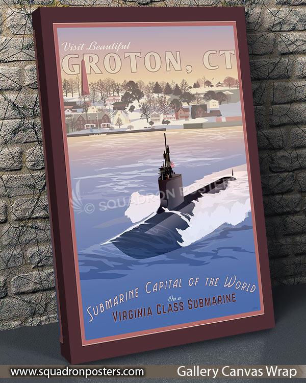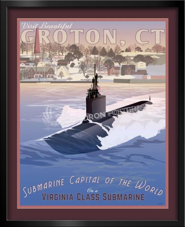 NB Groton Virginia Class Submarine vintage style military aviation travel poster art by – Squadron Posters!