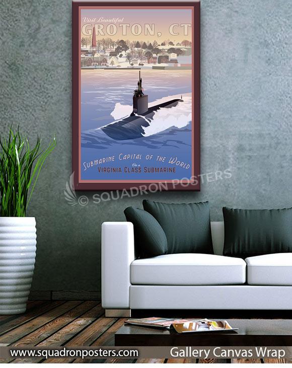 NB Groton Virginia Class Submarine vintage style military aviation travel poster art by – Squadron Posters!