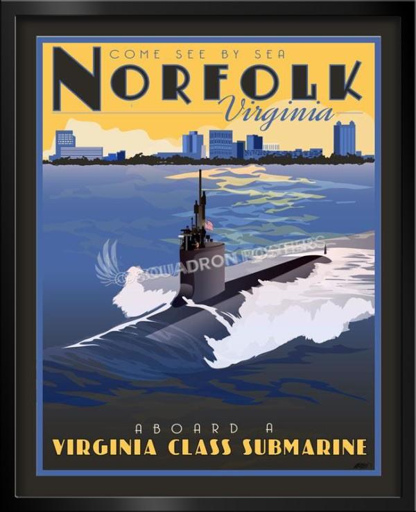 NB Norfolk Virginia Class Submarine vintage style military aviation travel poster art by – Squadron Posters!