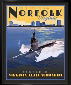 NB Norfolk Virginia Class Submarine vintage style military aviation travel poster art by – Squadron Posters!